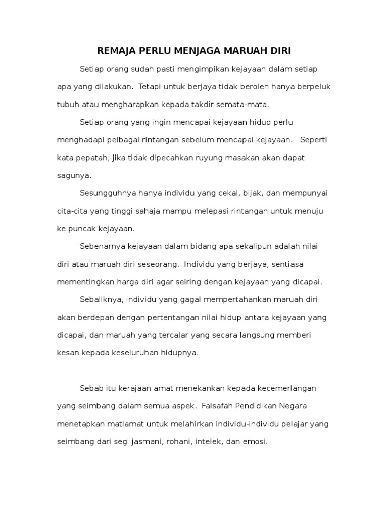 Remaja Perlu Menjaga Maruah Diri Pdf